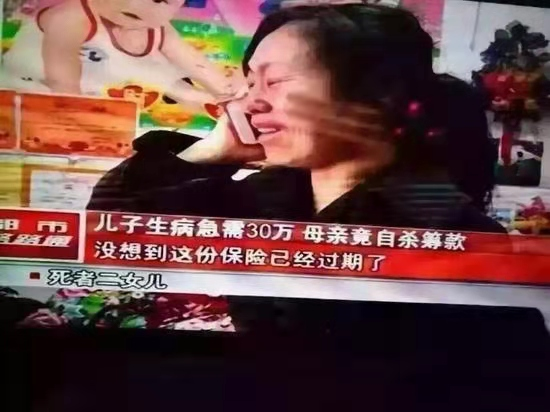 这是一位母亲给孩子筹不到30万元的手术费用,痛苦万分,突然想起自己还有一份意外险,无奈之下跳楼自杀,以为可以理赔到20万给孩子治疗。可那是一份一年期的意外险,而且在去年的11月27日已经过期了,但是母亲不知道这些,只知道自己有一份保险,出事了可以赔几十万。这位母亲以为自己的纵身一跃可以换来孩子的手术费用,然而实际情况却让人唏嘘。