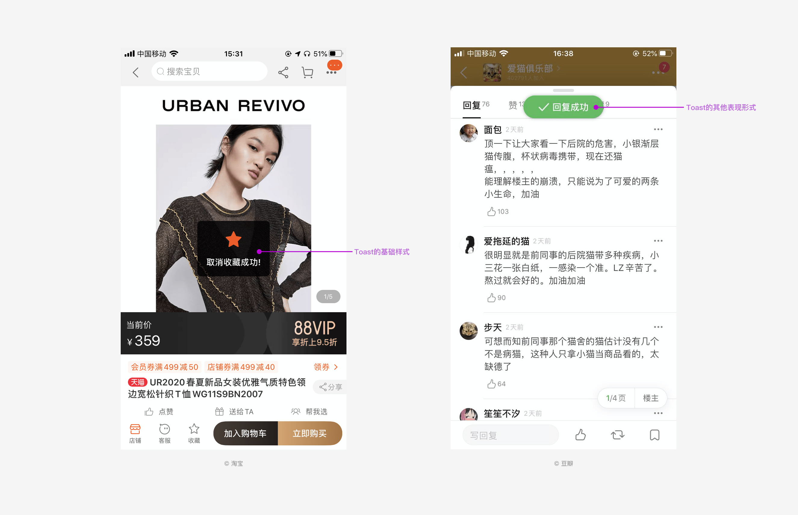 Toast提示是用于告知用户其操作结果的反馈,一般出现在界面的中间,经过2-3s左右会自动消失,不需要用户操作。