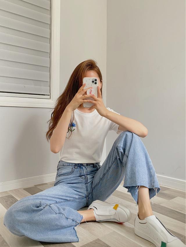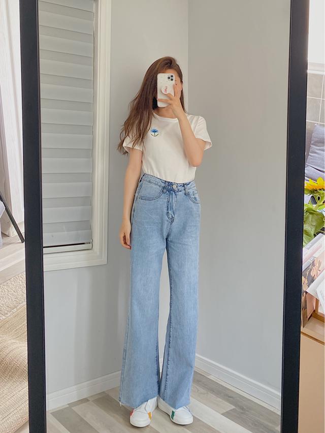 牛仔裤搭配短T的穿搭,在夏天绝对是不会出错的一种穿搭了,最好是阔腿裤,比较清凉透气,酷女孩穿搭必备,而且超级的显高显瘦,直接代替长裙都可以。