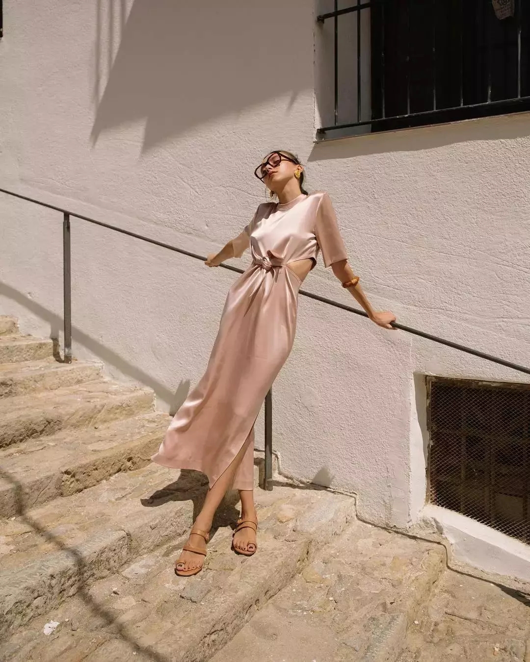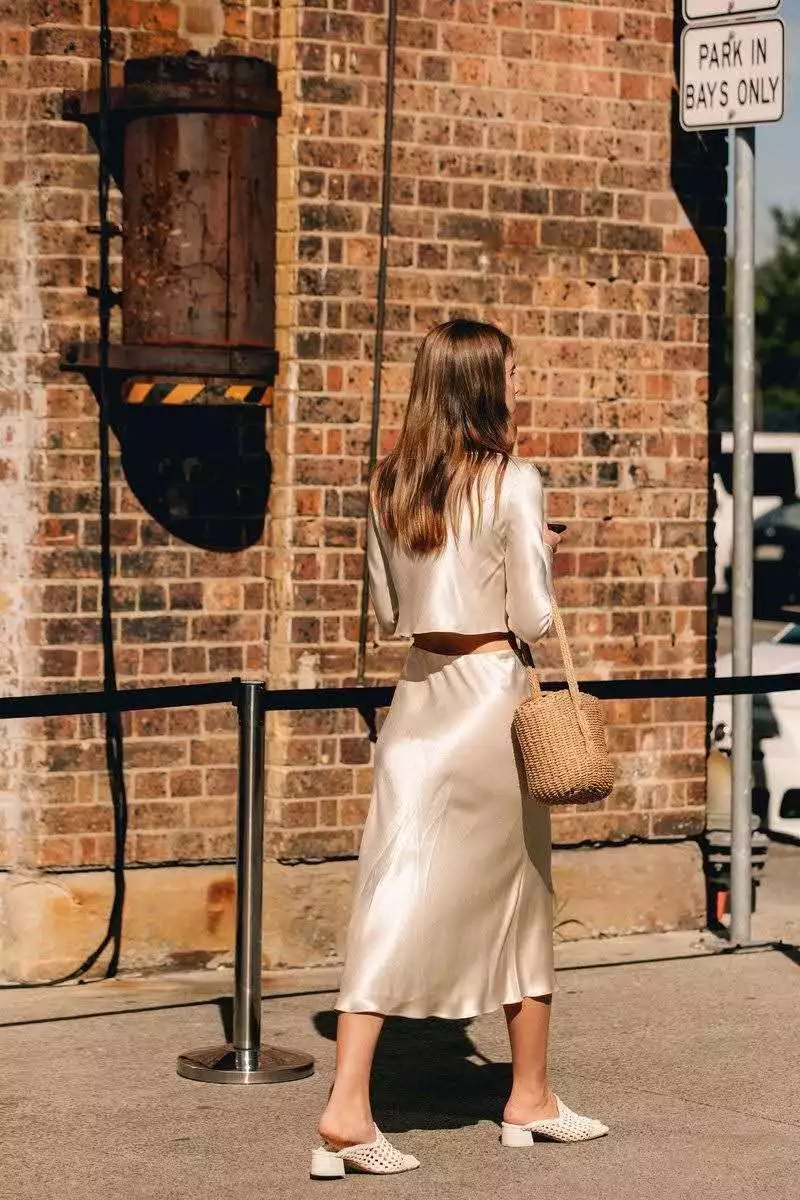 经过阳光的照射,丝绸会透出华丽的光泽感,跟随着你的一举一动微微流淌。所以说,穿真丝的女人,很难在人群中不被发现。