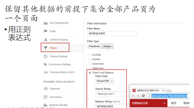 如果我们查看每一个商品页的表现,然后再把所有一个一个页面的数据加总起来作分析,就太麻烦了(根本无法实现分析)。这个时候,我们必须要合并同类项。