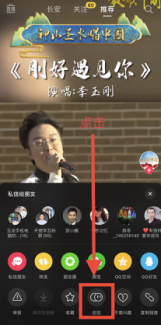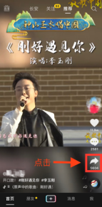 步骤1:在抖音短视频中选择需要合拍的热门短视频,点击视频播放界面的️按钮,如图1所示。