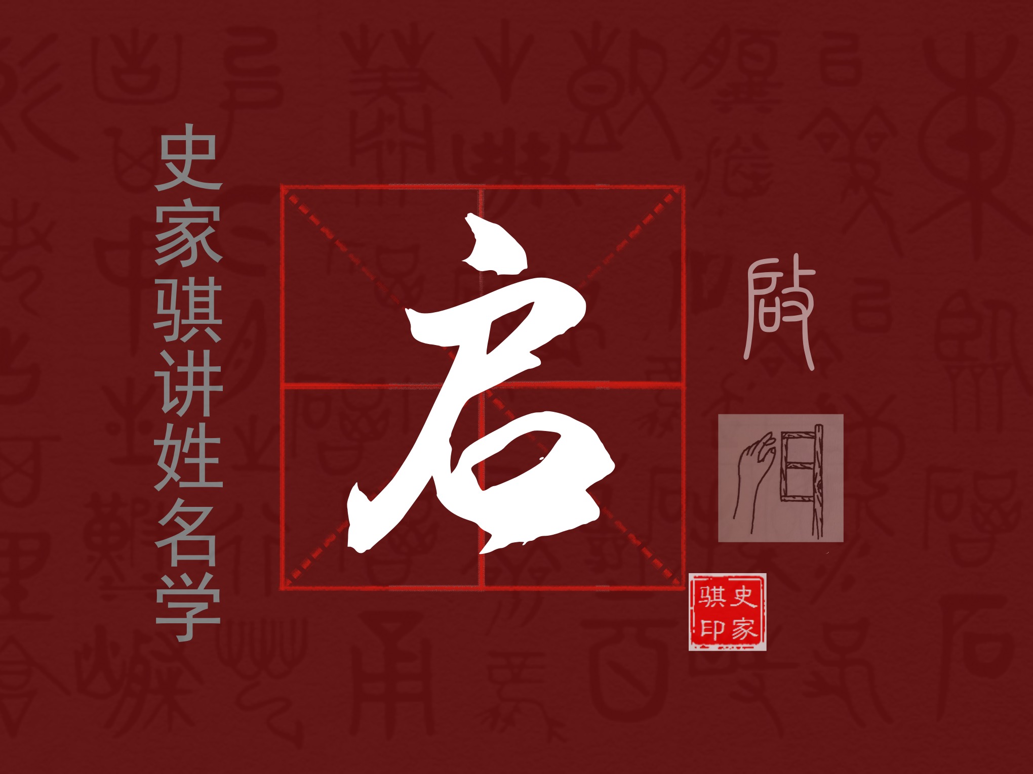 【启】是个会意字,甲骨文从手,从户,用以手开门来表示打开,金文增加口,简体字从户、从口,以开门、张口表示打开。本义是打开,引申为开导、开始、陈述、书信。