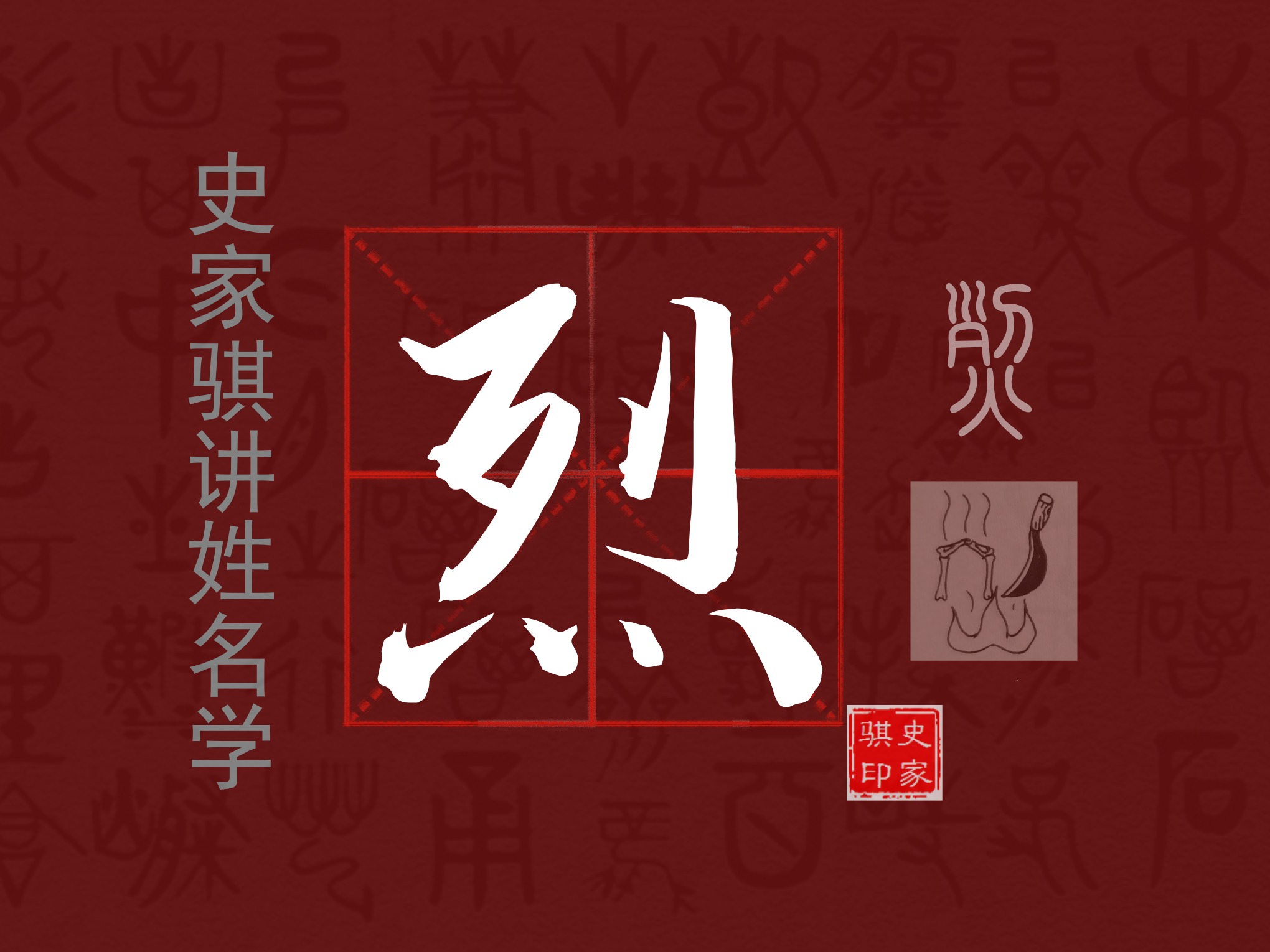 【烈】是个形声字,灬表意,篆书形体像火焰,列表声,列有分解义,表示物被火烧毁而分解,烈的本义是火势猛烈,引申为刚直、严正、功业、为正义而死。