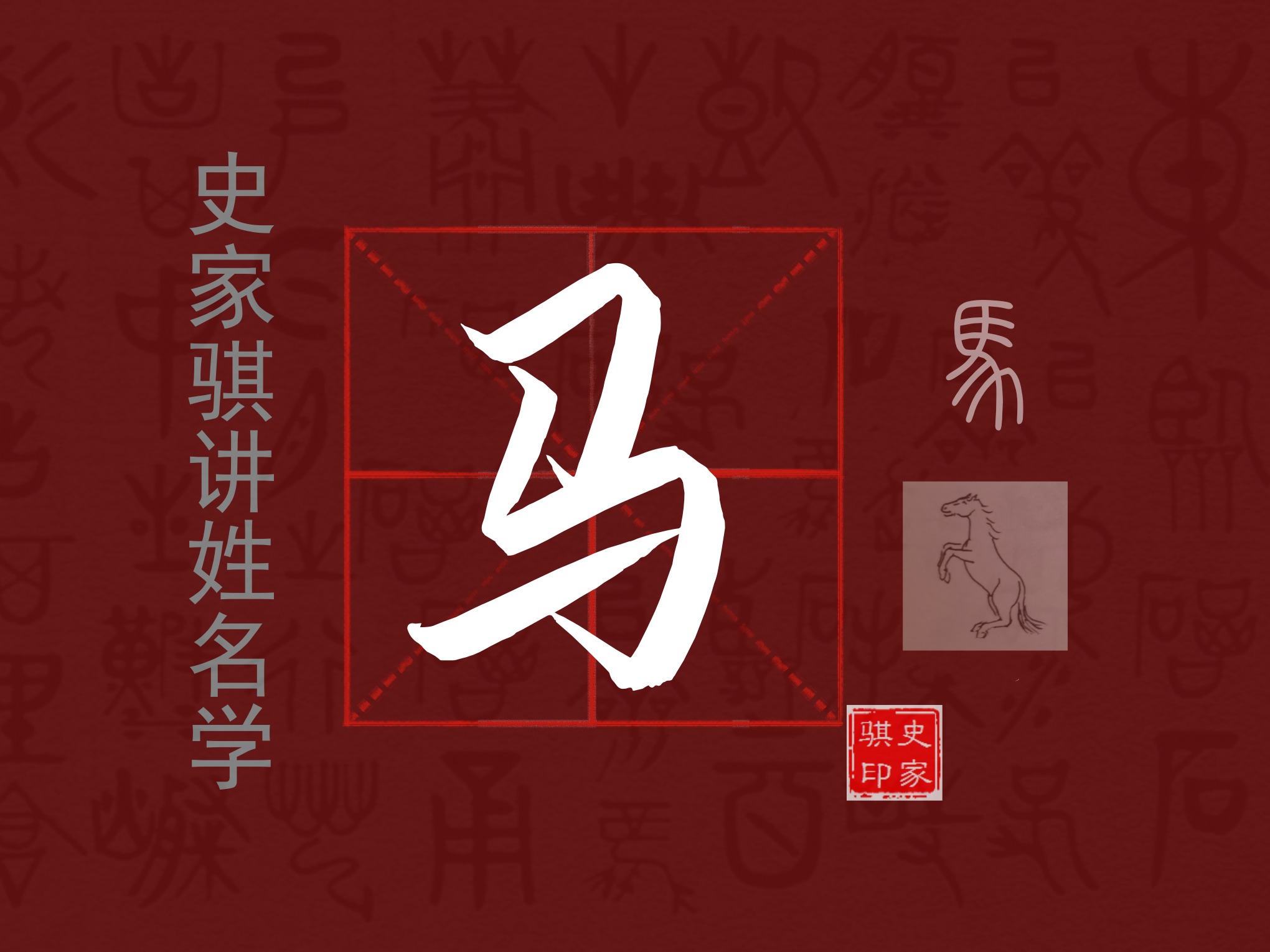 【马】是个象形字,古文字形体像马,本义是马,也用做姓氏。