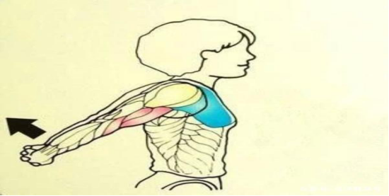 请参考图片:双手平举,掌心向上,听我口诀手臂向正后方摆动三次,123~在往后延伸的过程中,有没有感觉到背部肌肉在向你的脊椎挤压,这个时候背自然就挺直了,大家一定要找到这种,