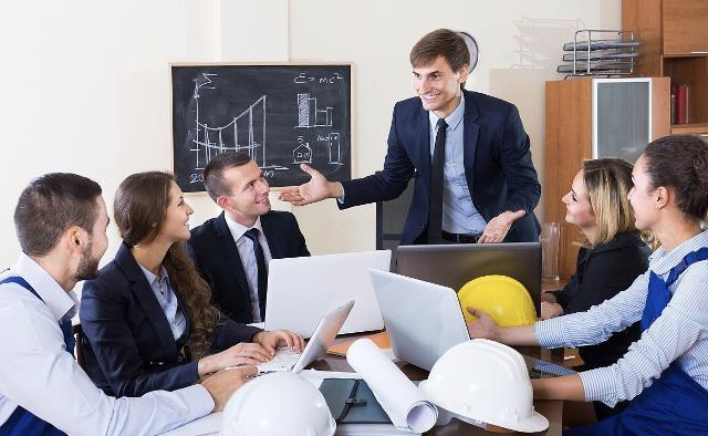 那么如果我们把场景换成是,例如,下面图片的这种小型会议交流,工作汇报的场景,那么在这样的场合中,你如果还一直保持这腰背直立挺拔的站姿,会不会给大家有拘谨感,压迫感、距离感和紧张感呢?像这样的场景我们就可以像图片里人物,适当身体前倾,呈现出表情轻松的状态,这样通过身姿传递出来的感受,就会在环境氛围中显得轻松几分,是不是交流感也显得十足呢?
