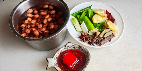 1.花生米浸泡备用,调料准备好。