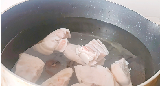 2.猪蹄冷水去锅焯烫捞出备用。