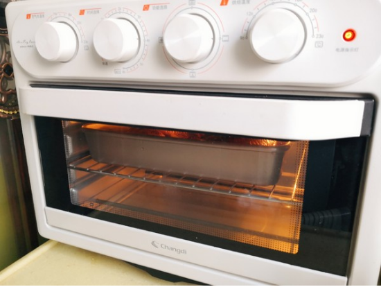 6.烤箱不需要预热,直接把鸡腿送入烤箱,200度,中层烤。