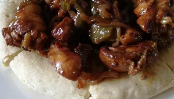 第11步、盛到刚出炉的馕上,也是大盘鸡