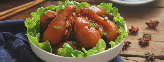 概述:1.准备好材料,猪手斩块。2.猪手斩块洗干净后,清水下锅煮开2分钟飞去血水,然后捞出冲洗干净后沥干水。3.姜切片,蒜拍扁,葱切段。4.锅内热油,把姜、蒜、葱白、八角、香叶、甘草放下去煸炒出香味。倒入猪手翻炒30秒左右。5.倒入水,水量差不多没过猪手,(喜欢吃皮肉比较软烂的,就要焖
