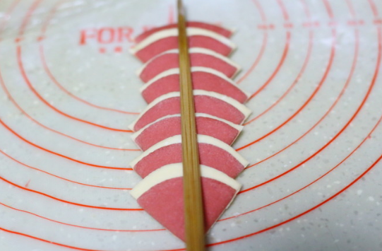 7.取一根筷子,沿着中间压下去,轻轻压出一条凹痕;