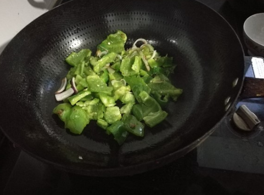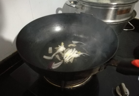 6.加入适量食盐及木耳,翻炒1分钟,出锅