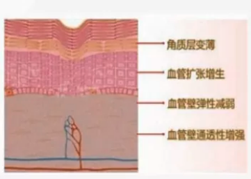 概述:红血丝是什么?面部红血丝医学名词叫“面部毛细血管扩张症”!皮肤的血管主要分布在真皮和皮下组织当中,而真皮层中的血管由浅丛血管层和深丛血管层构成。这些潜藏在皮肤下的血管一般情况下是看不见的。但是,如果情绪较激动、起伏较大(例如愤怒、兴奋),或者受到冷热刺激(