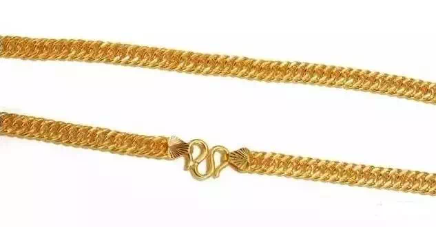 4、元宝链:项链的组成部分是一个上下内凹、形似元宝状的物体,可搭配艺术款和时尚款吊坠佩戴。