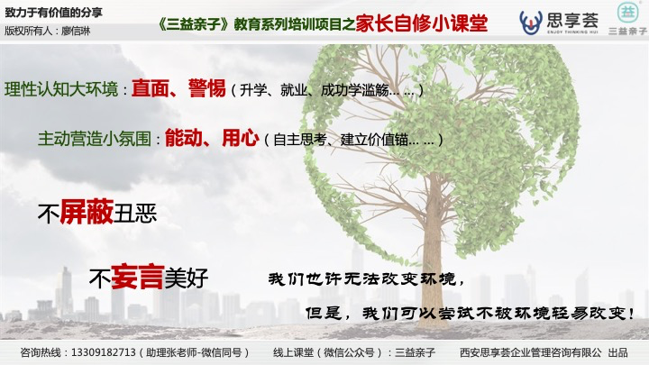 正因为如此,我所发起的《三益亲子》家庭教育培训,始终坚守一个很重要的理念,就是“我们不一定提供确切的答案,我们致力于引导、帮助家长去探寻专属于你和孩子的亲子互动模式”。