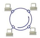 环型拓扑结构为封闭的环,连入环型网络的计算机也有一个硬件接口,这些接口收尾连接成一条链路,信息传送也是广播式的,沿着一个方向单点逐点传送。环型网络拓扑结构如下图所示。