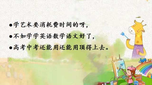 又有家长又问了,我要学艺术要消耗费时间的呀,那我不如学学英语数学语文好了,这样呀,高考中考还能用还能用顶得上去。