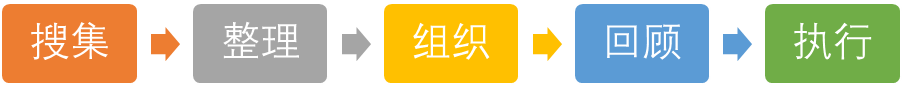 GTD首先要求我们做的事,是将我们大脑里所有的想法,待办的行动项进行搜集,写在一张纸上。不管他们是成熟的想法,不成熟的想法,都不要管。先把它们都写下来。这样做的好处是你的大脑不用再时时刻刻想着还有哪些事要做,要在什么时候去做。把大脑从“记忆”这个低级功能的压力解放出来,而去专注于“思考”这个更高级的功能。