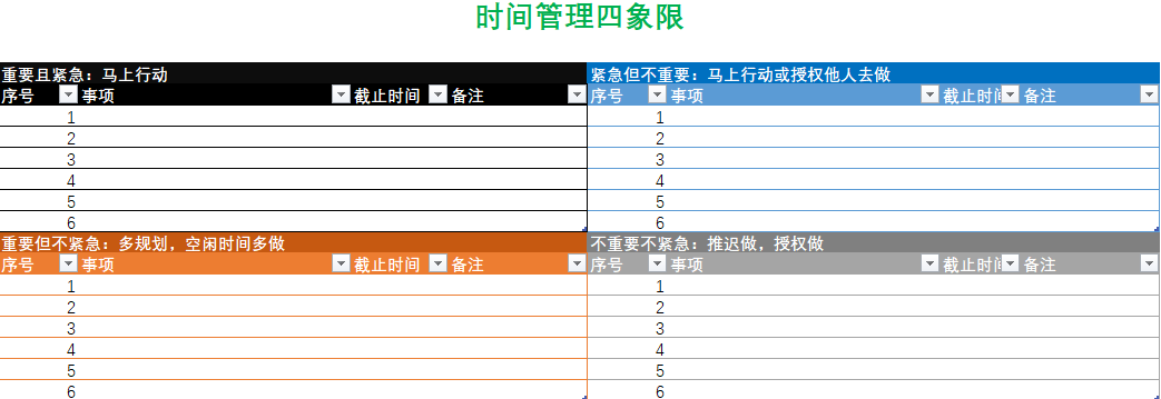执行的过程,就是将上一步制定的计划转化为具体的行动项,并且要根据要事优先的原则来进行执行。就是你要确认哪些对你来说是重要紧急的事物。