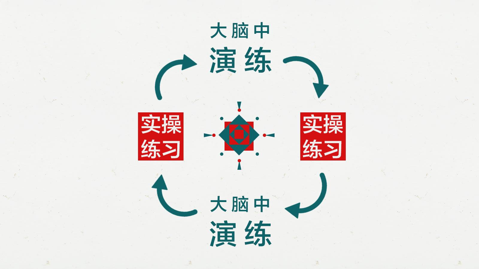 在大脑中演练----实操练习----在大脑中演练----实操练习,一个不断循环的过程。