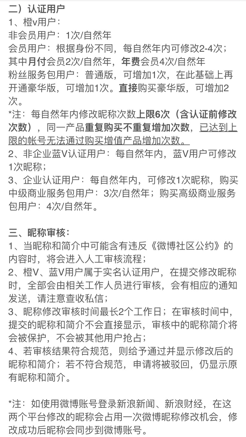 微博昵称也不是无限制可以修改的,普通微博(非认证、非会员的)用户一年只可以修改一次昵称,所以请谨慎提交!