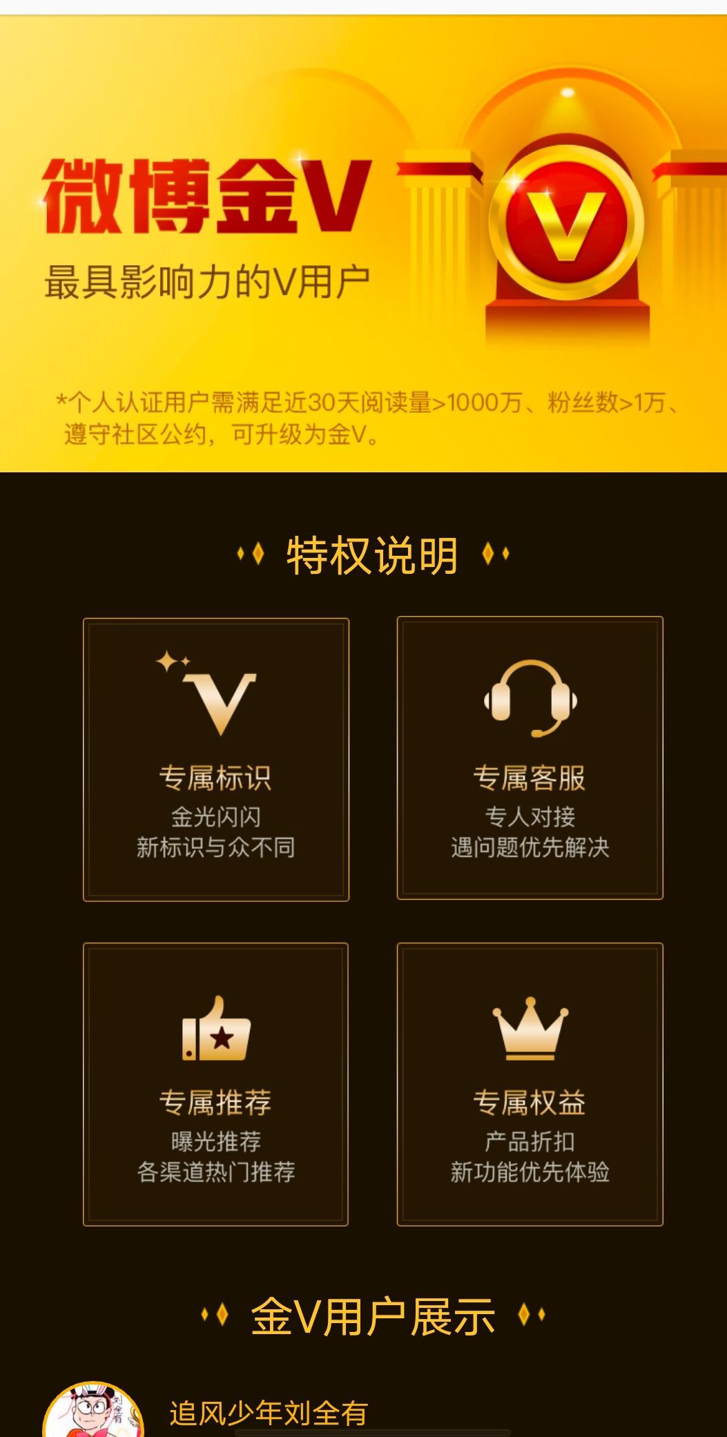 接下来我给大家说一说,成为金v,需要满足的条件 :粉丝基数大于等于一万,近30天的阅读量大于等于1000万,没有违反社区公约,可自动生成金v。成为金v会有金光闪闪的标识,可以享受专属客服,问题优先解决!
