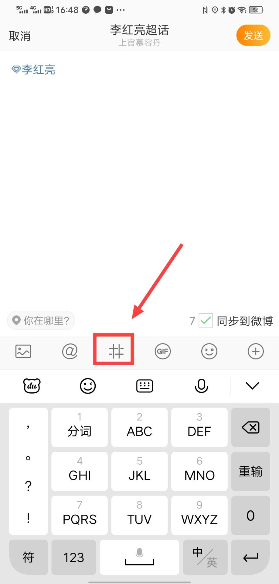 第二,在李红亮超话或者自己的超话里面,发布带有热搜的话题的博文!选择不同步到微博!一定不要在陌生超话里面发,带有热搜的内容,因为和人家的超话不相关,很有可能会被投诉,一旦被投诉,咱们在超话里面再发布内容就不显示了!