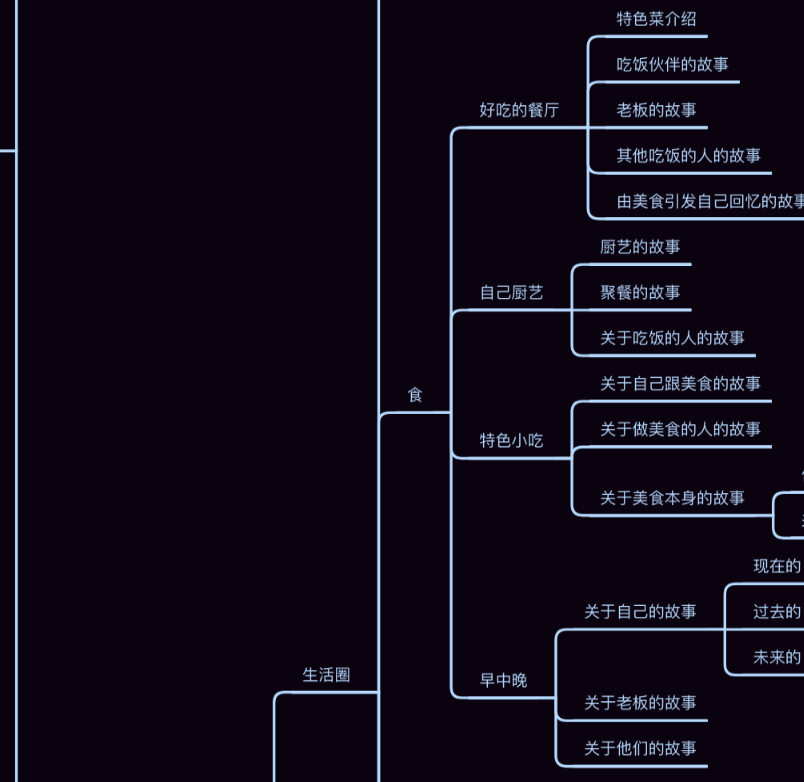 我给你看我一对一私教的课程思维导图,其中一个“食”就有很多写的方向
