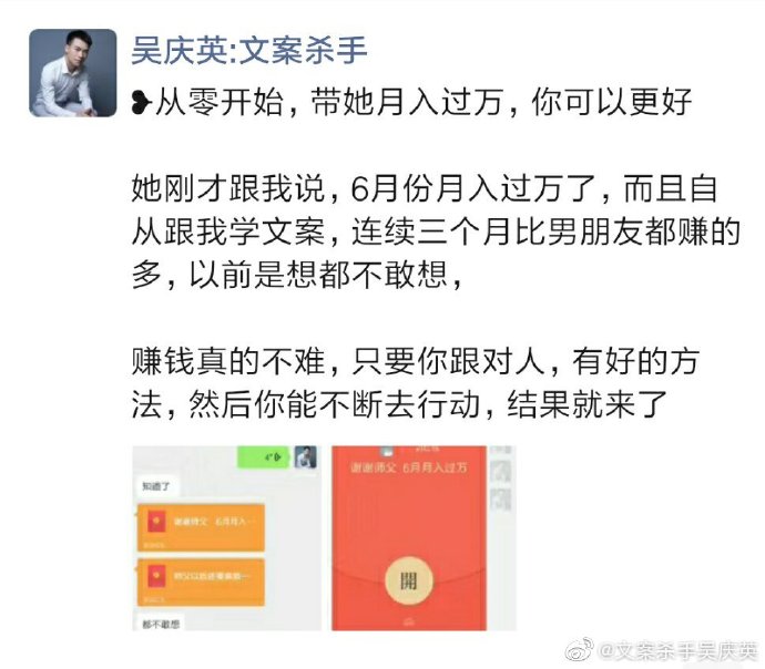 他通过文案,从月入1万的签证小哥,出来做文案,7个月实现月入100万,不到一年实现日赚800万的杀手头子,是不是很不可思议,说实话