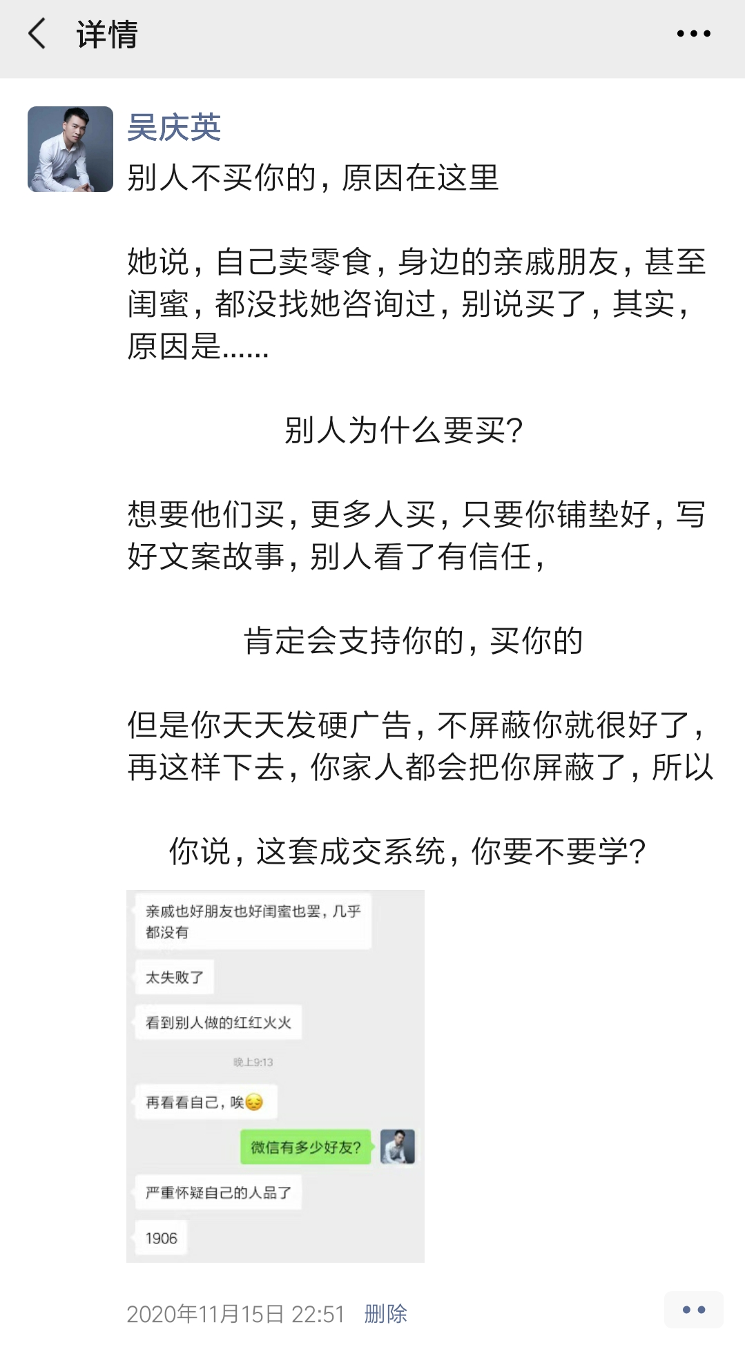 以上就是朋友圈成交文案的三个部分,以及部分的写作方法,你听完之后是不是觉得成交圈,写法也非常简单