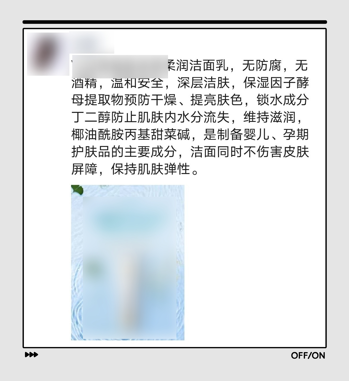 你看这条护肤品文案,这是一款洁面乳,第一眼看上去,是不是有一种立马想滑走的感觉?为啥?是不是因为广告嫌疑太重?
