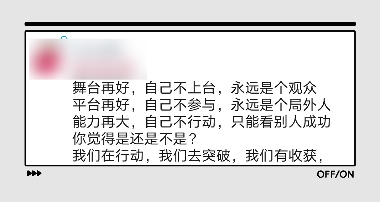 像这种鸡汤类的,你也看了不少吧,就像喊口号,天天看这样的文案,你想看吗?会不会想直接屏蔽?