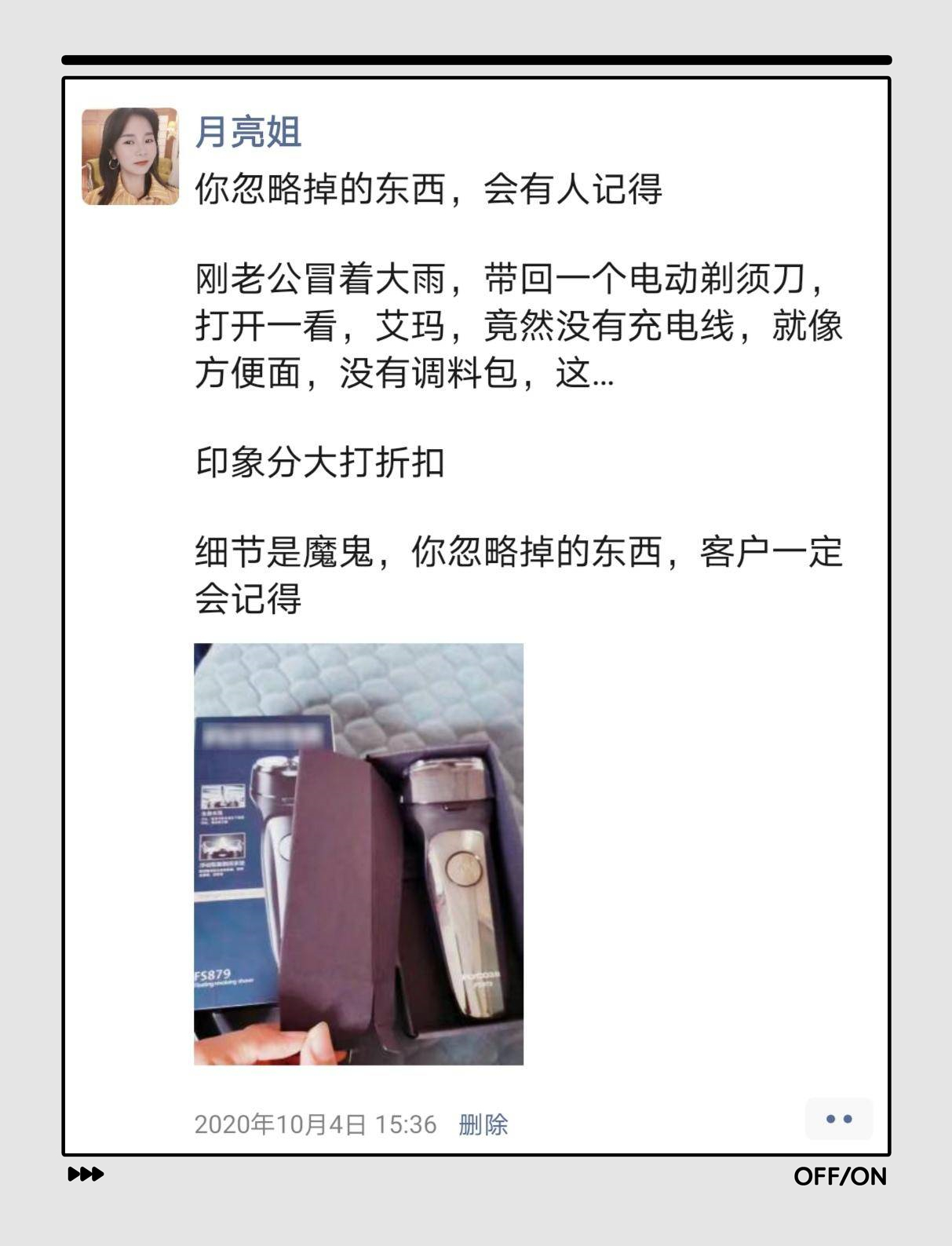 其实,也就是身份没转变过来,很多人成为卖家后,就把自己买东西的感觉给忘了,