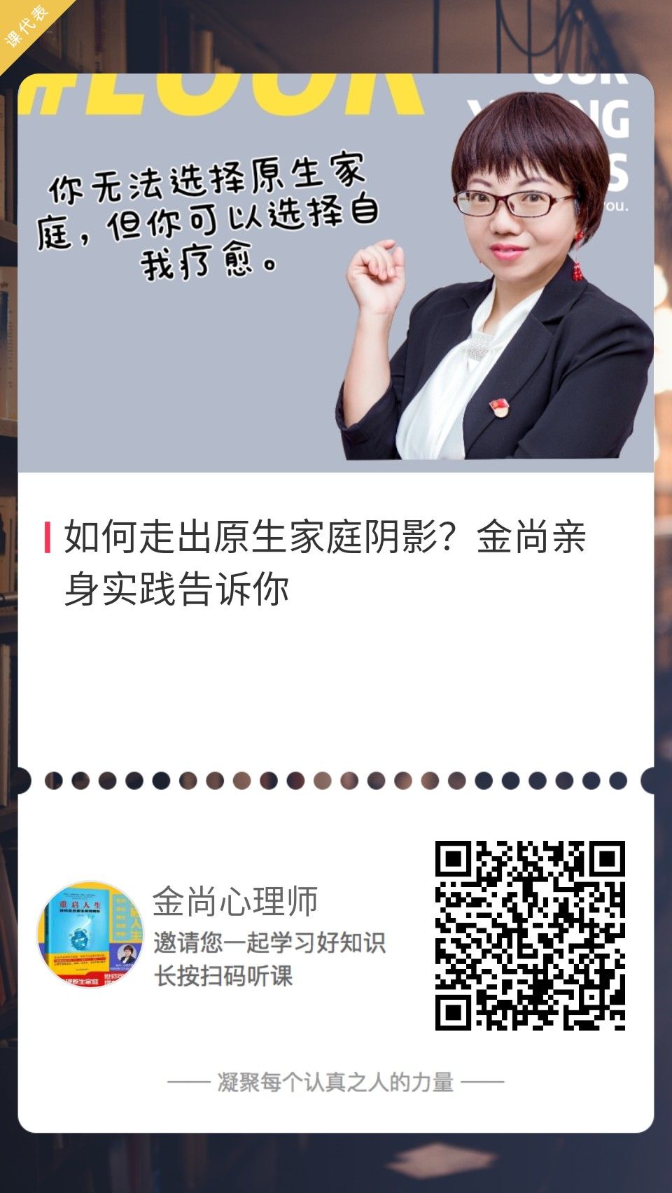 其实心理学说的是,“亲爱的,外面没有别人,只有你自己”(张德芬),一切外在关系模式都是我们内在关系模式的向外投射。与父母和解,既不是必要条件,也不是充分条件。