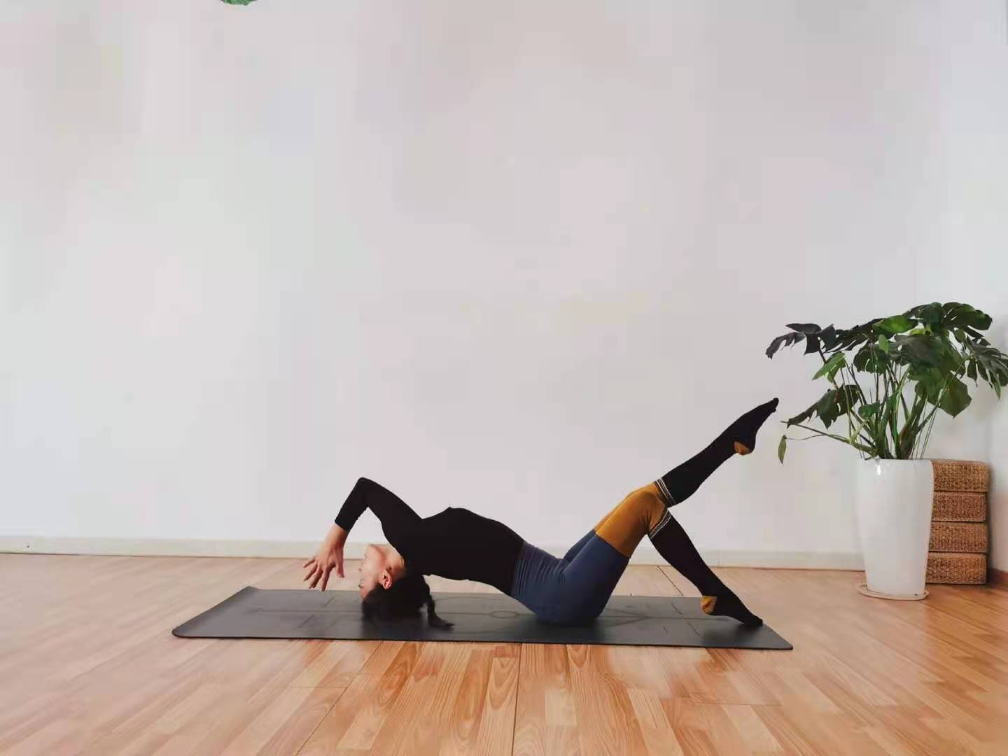 功效:这个体式可以活化上胸椎,让整个肩膀灵活,切记维持骨盆的稳定和整条脊柱的延展,同时肩膀放松。