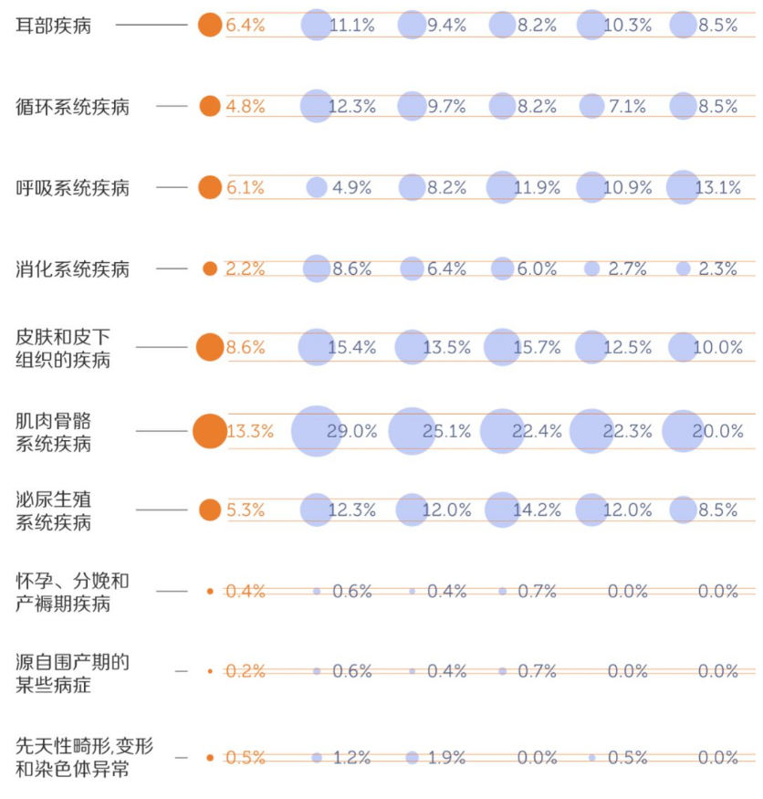 《柳叶刀》2019年发布的一篇论文研究了不同程度的失眠引起并发症的概率。如果以国际疾病伤害及死因分类标准第十版(ICD-10)进行划分,和未失眠人群相比,失眠患者更容易引起骨骼肌肉系统、内分泌和眼睛等部位的并发症。