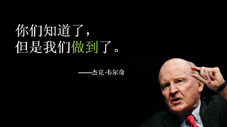 后来杰克韦尔奇真的为中国的企业家开了学习课程,有一次他在咱们中国做了一次演讲,讲完以后有一部分企业的管理人员非常失望,因为感觉他讲的东西我们都知道,对于这个问题的回答是:你们是知道,而我是做到了。